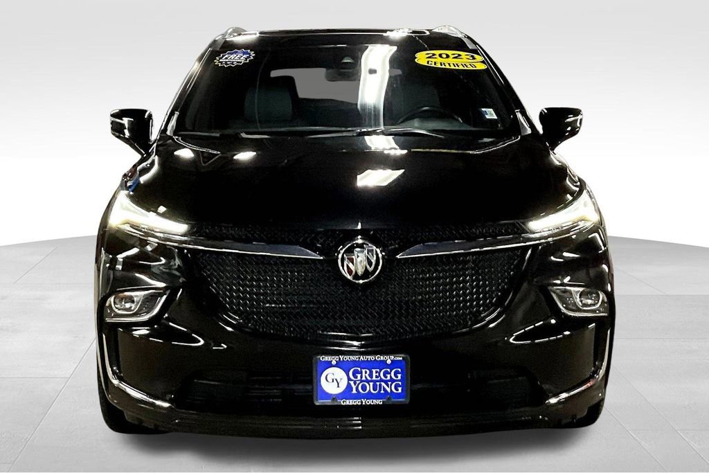 Our distinguished One Owner 2023 Buick Enclave Essence AWD Sport Touring Edition with the Experience Buick Pack is sleek and distinctive in Ebony Twilight Metallic! Powered by a 3.6 Liter V6 supplying 310hp, matched with a 9 Speed Automatic transmission for commanding confidence behind the wheel. The Premium Ride suspension provides comfortable handling, and this All Wheel Drive SUV can achieve nearly 25mpg on the highway. Remarkably sophisticated, our Enclave's exterior design showcases LED lighting, heated power mirrors, roof rails, dual-exhaust outlets, a hands-free liftgate with logo projection, and our package for a sunroof and 20-inch gloss black wheels.
