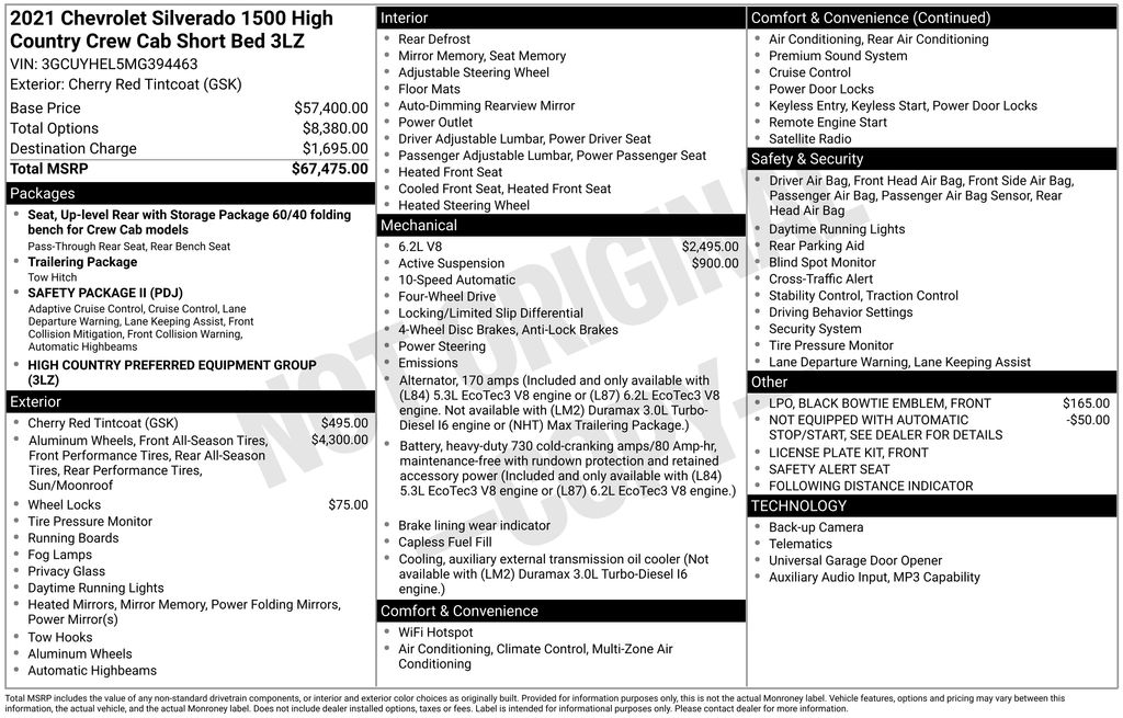 **2021**Chevrolet**Silverado 1500**High Country**Deluxe Pack**Navigation**Heated Steering Wheel**Heated & Ventilated Front Seats**Sunroof**