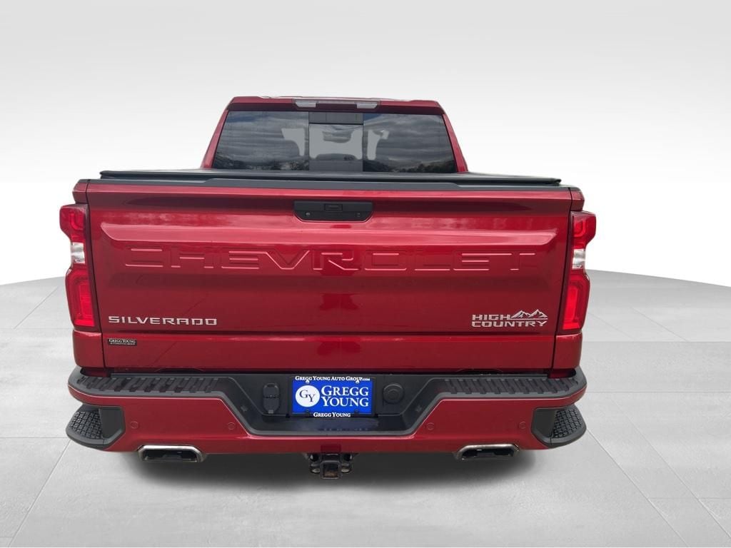 Our impressive 2021 Chevrolet Silverado 1500 High Country Crew Cab 4X4 with the Deluxe Package shows off strength, style, and a bold Cherry Red Tintcoat design! Featuring a mighty 6.2 Liter EcoTec3 V8 that offers 420hp paired with a 10 Speed Automatic transmission for optimum capability. This Four Wheel Drive truck takes you to the top of the mountain without breaking a sweat and sees nearly 20mpg on the highway. Its rugged look makes a big impression with LED lighting, high-intensity headlamps, chrome recovery hooks, dual exhaust outlets, power tailgate, and specially packaged 22-inch alloy wheels with a power sunroof.