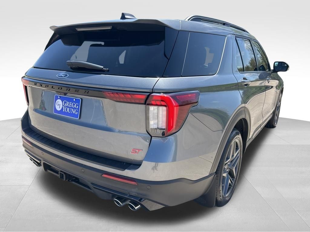 Reward yourself with our One Owner, Accident free 2025 Ford Explorer ST 4WD that's athletically inclined in Carbonized Gray Metallic! Powered by a Twin-TurboCharged 3.0 Liter EcoBoost V6 serving up 400hp to a paddle-shifted 10 Speed Automatic transmission for premium performance. A sport-tuned suspension and Terrain Management help your family take on tricky trails and twisty roads, and this Four Wheel Drive SUV sees nearly 24mpg on the highway. Showing a confident style all its own, our Explorer boasts LED lighting, quad exhaust outlets, a power liftgate, 21-inch wheels, roof rails, a twin panel sunroof, and black accents. Be ready to turn heads in this bold SUV!