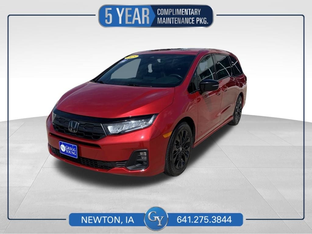Bring bold style to every drive in our One Owner, Accident Free 2025 Honda Odyssey Sport-L Minivan in Radiant Red Metallic II, where sporty design meets family-friendly versatility! Powered by a 3.5 Liter V6 delivering 280hp to a paddle-shifted 10 Speed Automatic transmission that puts better driving at your fingertips. Quickly get up to speed commuting or car-pooling, and you'll discover this Front Wheel Drive minivan sees nearly 28mpg on the highway. Exclusive Sport design cues, gloss-black alloy wheels, and matching mirror caps bring a dash of athletic style to our Odyssey's power sunroof, LED lighting, fog lamps, power liftgate, and power sliding side doors.