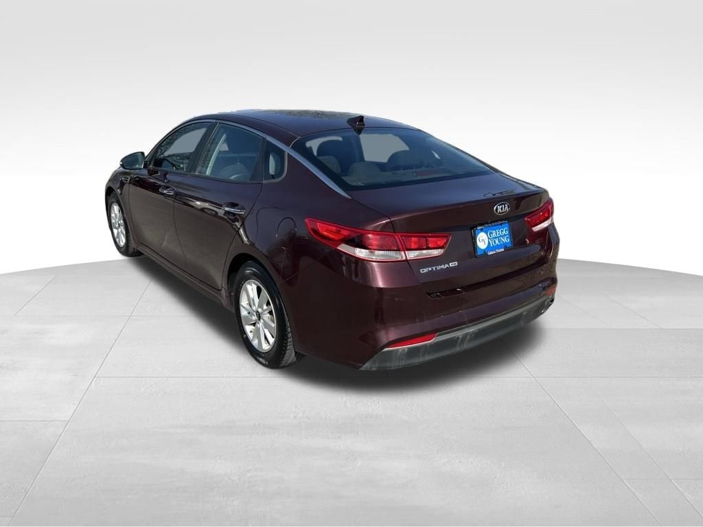 Our Accident Free 2018 Kia Optima LX Sedan displayed in Sangria is waiting for a driver like you. Powered by a 2.4 Liter 4 Cylinder offering 185hp tethered to a 6 Speed Automatic transmission with Sportmatic Sports Shifter. This Front Wheel Drive sedan earns nearly 36mpg on the road while being a natural performer. Our impressive Optima is immediately recognized by its distinctive and exclusive gloss black Tiger nose grille. Power mirrors with LED turn-signal indicators, 16-inch Silver Finish alloy wheels, and solar control glass complement the sleek exterior.