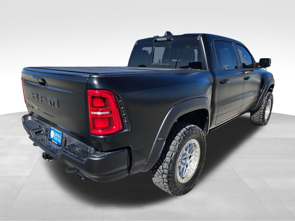 Engineered for extremes, our 2026 RAM 1500 RHO Crew Cab 4X4 with the Level 1 Equipment Package in Diamond Black Crystal Pearl dominates trails with hardcore off-road confidence. Powered by a Twin-TurboCharged 3.0 Liter High Output Hurricane 6 Cylinder generating 540hp for an 8 Speed Automatic transmission with nine drive modes. Returning 16mpg on the highway, this Four Wheel Drive truck is a fearless trail machine with a high-speed E-Locker rear axle, an exclusive long-travel suspension, and extra ground clearance. Extra bold, our RAM's exterior showcases a panoramic sunroof, LED lighting, front/rear tow hooks, almost 12 inches of clearance, underbody skid plates, Bilstein Black Hawk adaptive suspension, off-road fender flares, alloy wheels, 35-inch tires, a performance hood, and a powder-coated front bumper.